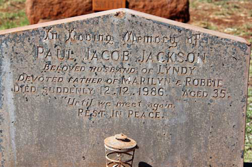 Resting Places: Calingiri, Broad Arrow Kurawah Cemetery, Calingiri, Coodardy Station, Davyhurst Cemetery, Diamond Bore Albala Karoo Nullabour Plains, Eucla, Glendalough, Gullewa Cemetery, Hill Grove Station (now El Questro), Mingenew, Mindaroo, Monkey Mia, Mt Newman Cemetery, Mt Palmer Yilgarn, Murchison House Station, Northam, Oscar Range Station, Onslow Pioneer Cemetery, Springhill Private Cemetery Bunbury, Wickepin Pioneer Cemetery