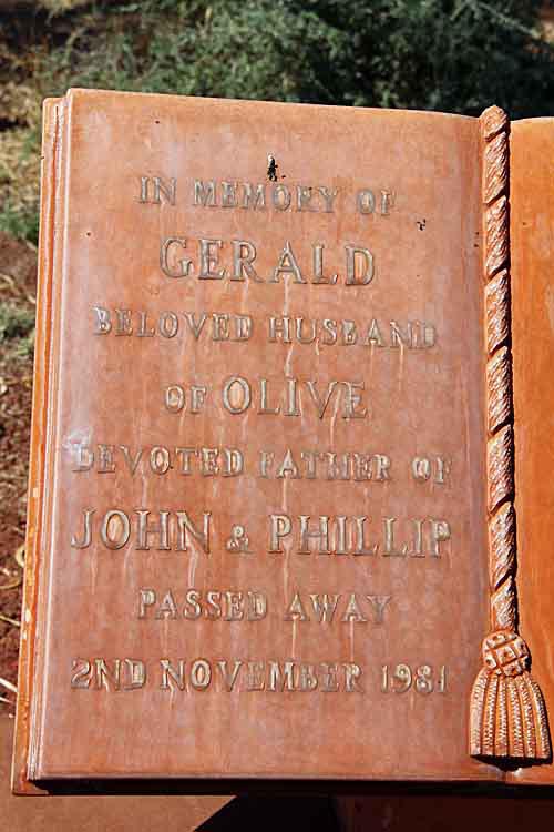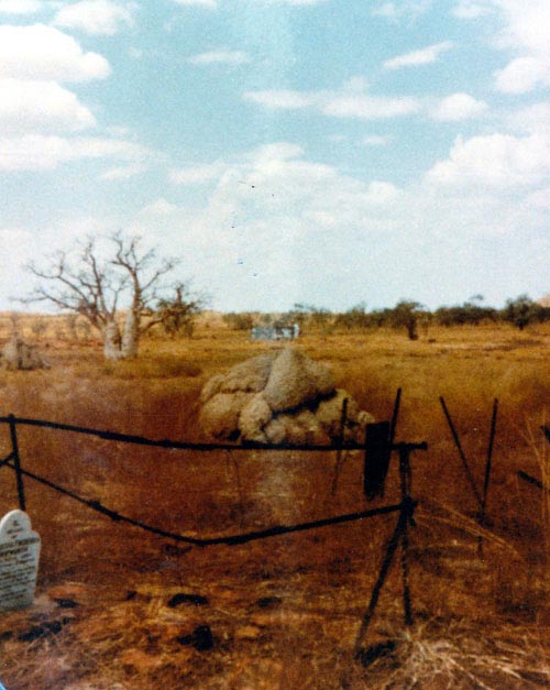 Resting Place: Broad Arrow Kurawah Cemetery, Deeside Manjimup, Erregulla Plains Mingenew, Errolls near Sandstone, Fields Find Cemetery, Glenvar Farm Wongan Hills, Grave Creek Mellenbye Station, Gum Creek Murchison Station, Karridale Pioneer Cemetery, Kooline Station Ashburton, Liveringa Station, Mardi Station, Mililya Station, Nungara Cemetery Sandstone, Ord River Station Cemetery, Well 37 CSR Canning Stock Route, Wickepin Pioneer Cemetery, Wooleen Station, Wurarga Dam